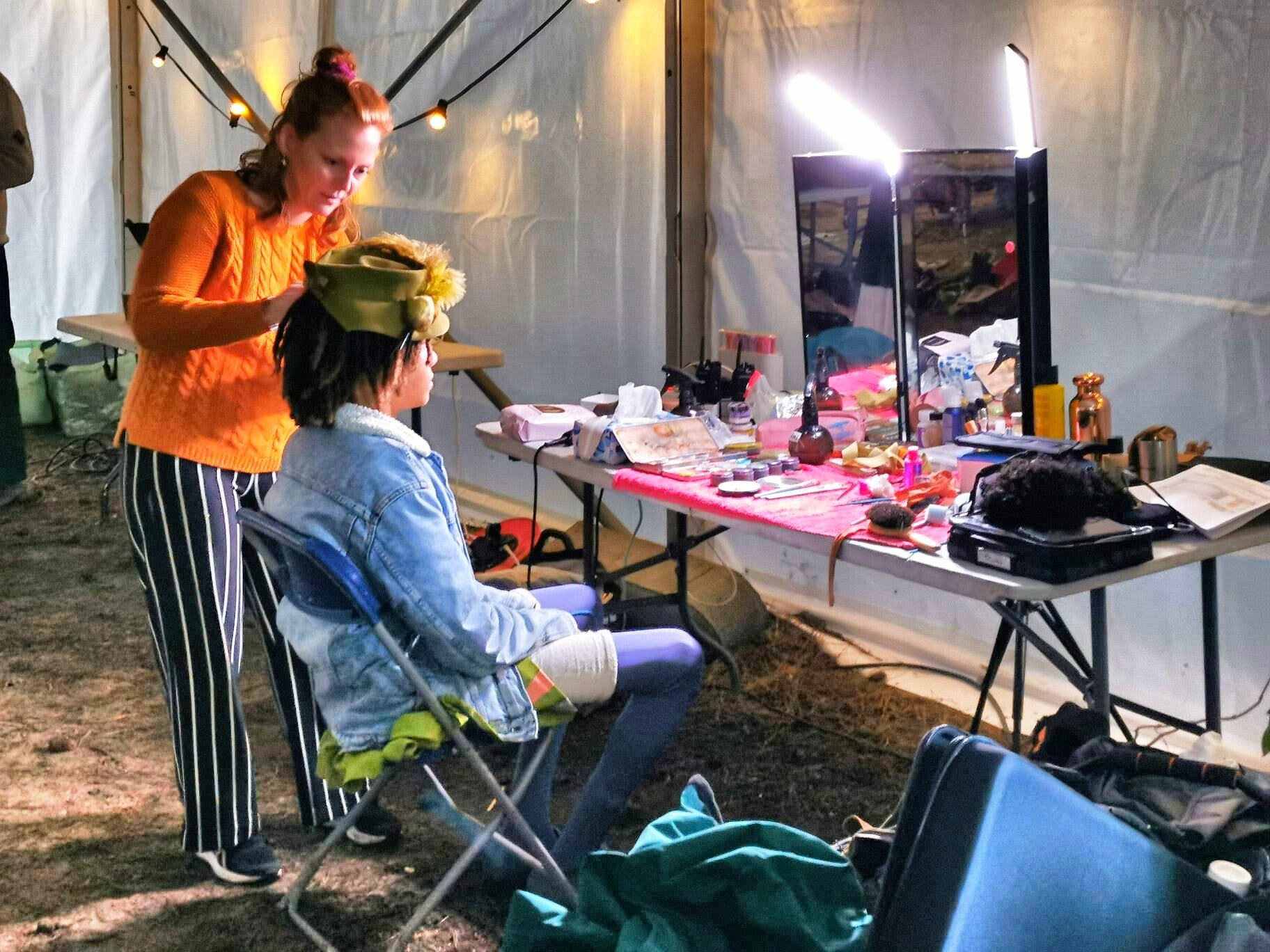 Naast de kleding is er bij grote producties ook aandacht voor de make-up en de haren. Afhankelijk van het soort productie zijn er tal van manieren om mensen een ander uiterlijk te geven. Soms moet er een zwerver worden gecreëerd, soms een mooie Barok-pruik en soms ook een complete make-over met aangemeten lichaamsdelen en lenzen.